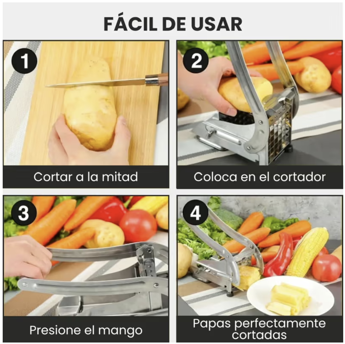 🥔 Este cortador manual con sistema de auto ayuda permitirá preparar patatas fritas caseras sin hacer fuerza, para que puedas hacer las mejores recetas sin riesgo a cortes.